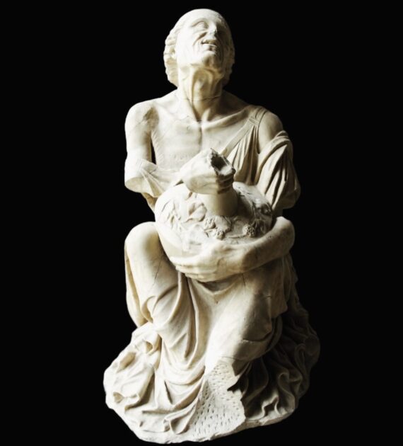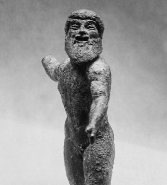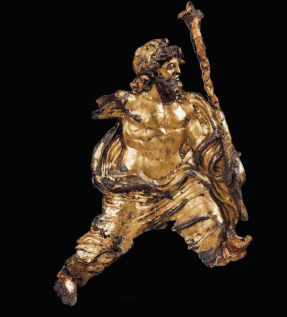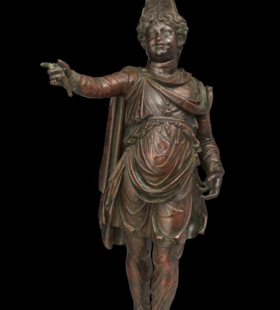 Big pyramidal hat, slim fit parachute pants (there must be a better term for these?), flowy cape, and bitchin’ wedge sandals: it’s not every day you see a chubby little 5 year old in such a get up! This bronze is a strange one and not so large (63 cm tall) and not to be