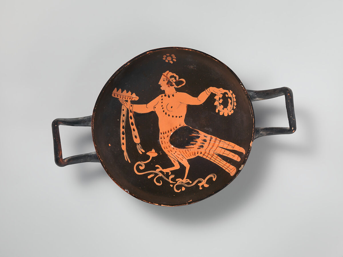The practice of using applied color to achieve the effect of red-figure gained some popularity in Paestan vase-painting. This example is in particularly fine condition.