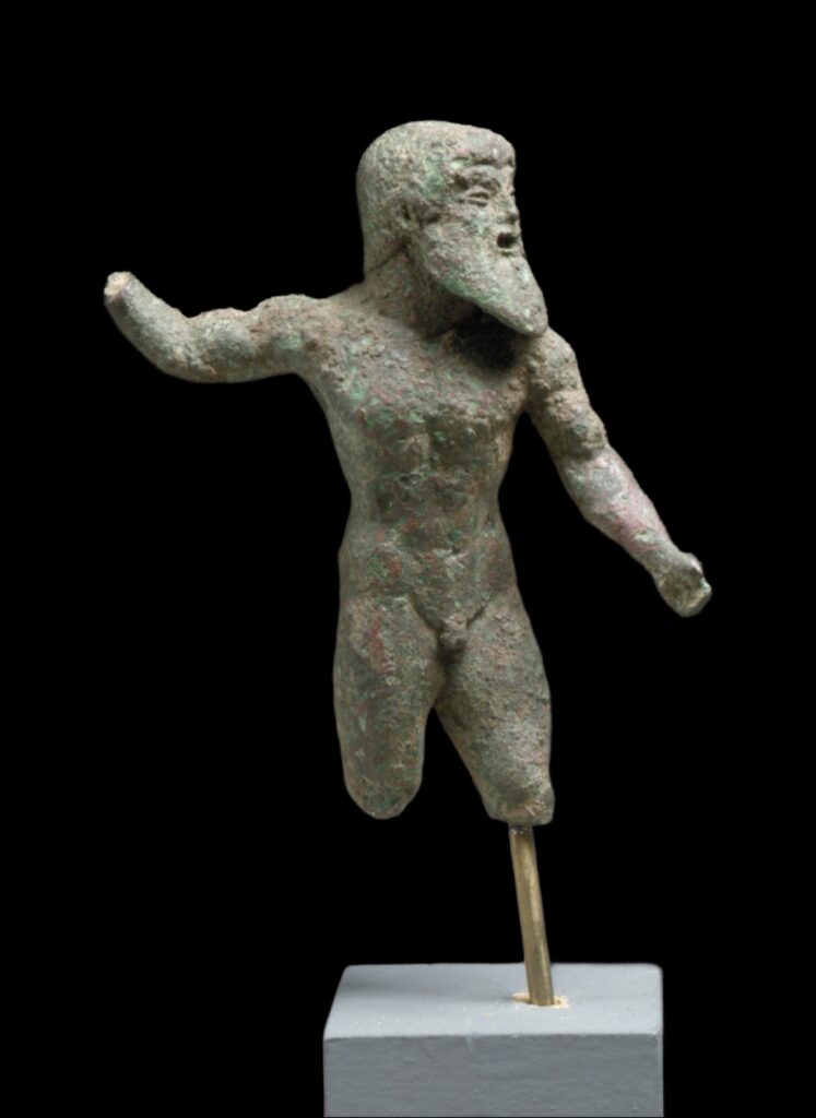 Perhaps you’re familiar with the ‘Artemesion Zeus/Poseidon’ – a highlight among many at the Athens’ National Archaeological Museum and a masterpiece of Early Classical bronze casting. Nude, powerful, lifesized and bearded he tends to inspire some debate thanks to his missing attributes. Did his trident go astray (in which case he’s Poseidon) or was it rather a thunderbolt (and therefore Zeus)?